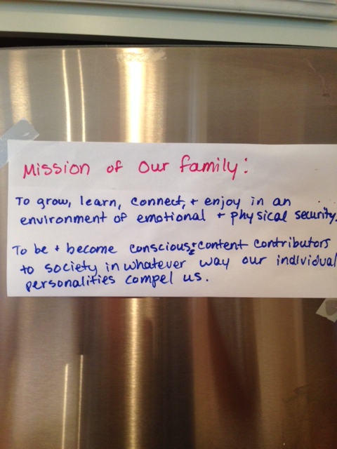Living according to mission statement ensures that interactions and decisions are deliberate and consistent with the overall goals of the family. It is a good way to make sure parents’ behaviors are compatible with the types of behaviors they wish to instill in their kids. And, If the kids are included in the development of the mission statement (and I suggest they are), parents can simply refer back to the mission statement when teaching/discimplining. For example:
